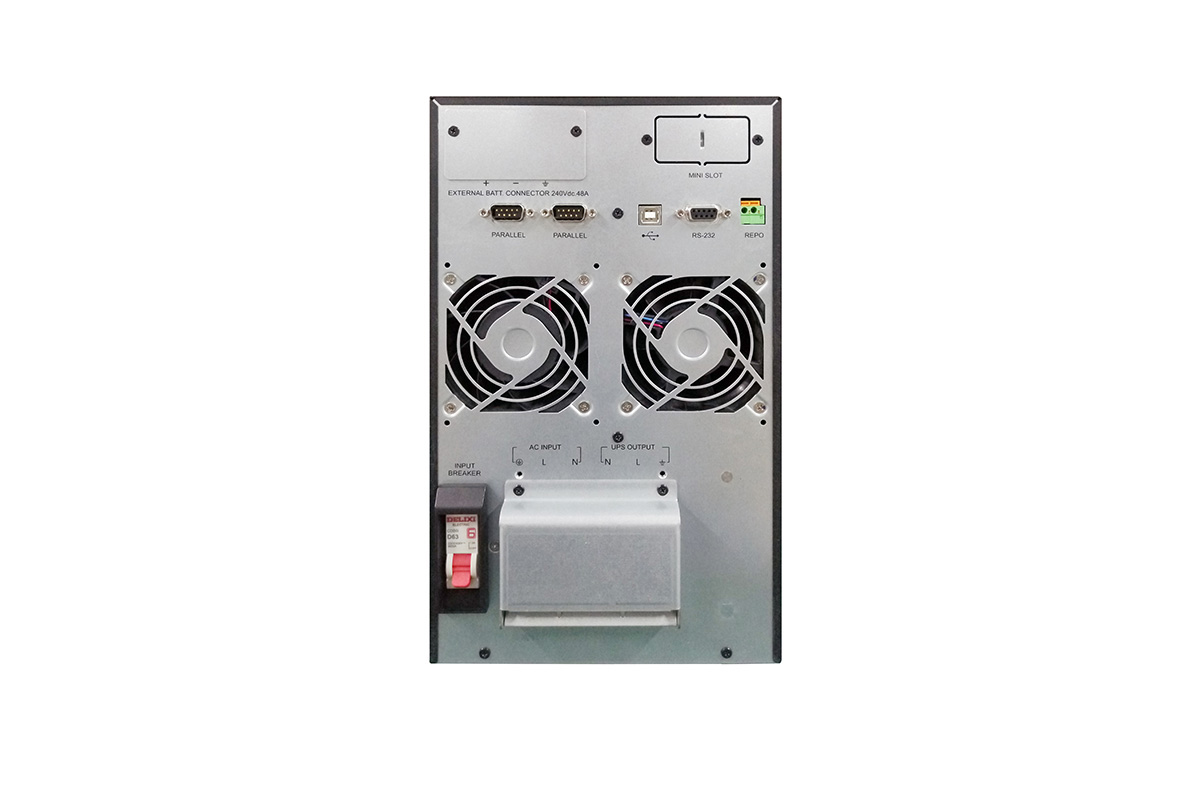 The Amplon N series 6-10kVA UPS is a single-phase on-line UPS with pioneering technology that provides output power factor up to unity and AC-AC efficiency to a maximum 95%. Its remarkably compact dimensions reserve more room for critical equipment such as workstations, POSs, ATMs, office appliances, small server rooms, and production equipment. The Amplon N series superior features include a N+X parallel redundancy function and variable fan speed control to guarantee high system availability and best Total Cost of Ownership (TCO).