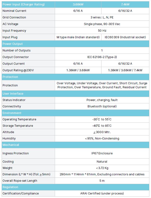 Its compact, lightweight design makes it ideal for on-the-go charging across urban, commercial, and residential environments The charger supports universal compatibility with Type-2 EVs and delivers up to 7.4kW output, ensuring efficient charging anytime, anywhere.